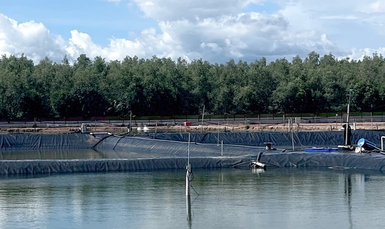HDPE geomembrane liners are used in fish and shrimp farming projects to reduce the risk of diseases and increase productivity by preventing water loss and the transmission of potentially harmful compounds from the soil into the ponds.